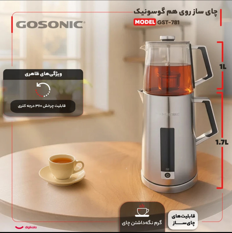 چای ساز گوسونیک مدل GST-781 ظرفیت ۲ لیتر با کتری استیل